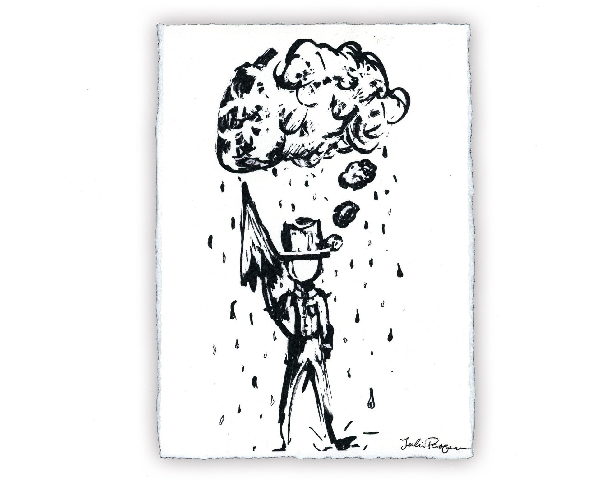 These prints are created through a modern printmaking technique. Each piece starts as a drawing created with Sharpie and Wite-Out, digitally cleaned up, and then printed on high quality water color paper.